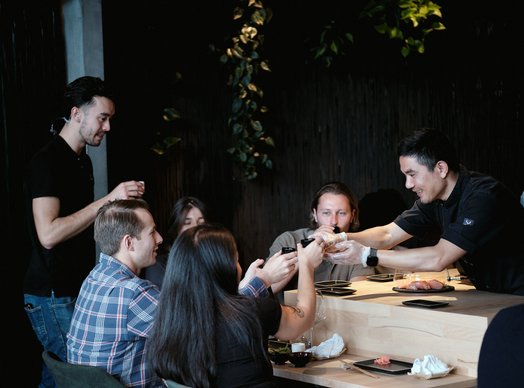Omakase bedeutet so viel wie „ich überlasse es dir“ und gemeint ist damit der Sushi-Koch. Hier bekommt ihr also ein vom Koch tagesaktuell frisch zusammengestelltes Menü und könnt so die Vielfalt der japanischen Köstlichkeiten probieren. Dabei sitzt ihr gemeinsam mit anderen netten Menschen an einem langen U- oder L-förmigen Tisch und könnt dem Koch live bei der Zubereitung zuschauen. Hier wird die höchste Hingabe für das Produkt zelebriert und ihr taucht gleichzeitig in die entspannte Zen-Atmosphäre des Restaurants ein.